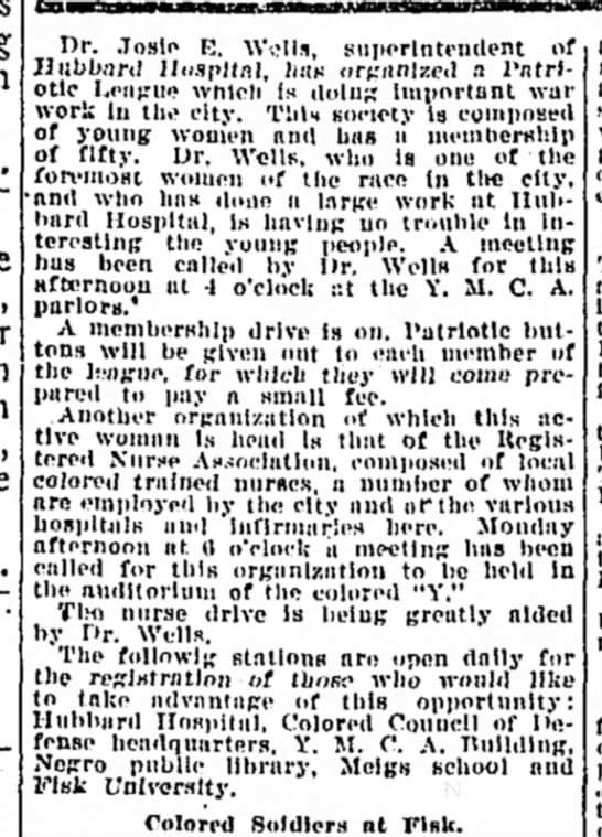 Hatred and violence wasn’t just in Nashville, it was enveloping the world in the first World War. Although the U.S. entered WWI in April of the previous year, it wasn’t until March of 1918 that Josie’s nephew Benjamin Walker Satterfield, who lived with her, left for Europe. He was a Corporal in Co. K, 372nd Regiment, U.S. Army. Ben’s next of kin in his military records was listed as his aunt “Dr. Josie E. Wells.” The terror that absolutely lived in her heart, knowing a boy she helped raise, after her sister Cornelia died, was going off to war. My heart hurts for her just thinking about it. The disheartening reality was Benjamin was fighting for a country that wouldn’t even take a stand to recognize that Black citizens, especially Black men, were often not afforded more than the most basic privileges of freedom.